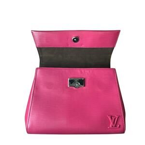 This is an authentic LOUIS VUITTON Epi Cluny BB in Hot Pink. This is a stylish and distinctive medium-sized shoulder bag that is crafted of Louis Vuitton textured epi leather in bright pink. The bag features a looping leather top handle with silver links, an optional leather shoulder strap, smooth leather sides, and a cross-over flap. This opens to a brown microfiber interior with patch pockets and a full-length zipper pocket.