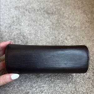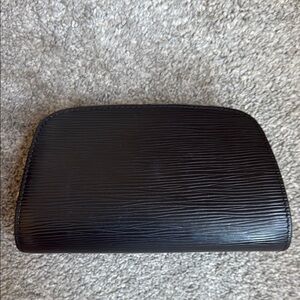 Small Louis Vuitton cosmetic case in Epi Leather. Condition is used - there are faint scratches on the exterior, and peeling on the interior. Great size for everyday purse usage.