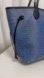 Authentic Louis Vuitton Neverfull MM in rare Blue Epi Leather (Denim tone). A timeless tote crafted in durable textured Epi leather with smooth leather handles and side cinch cords. Spacious open interior with a beige lining, perfect for daily use or travel.