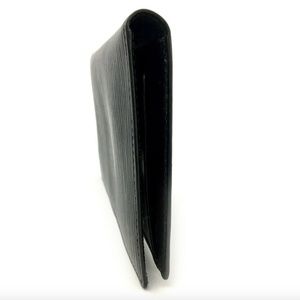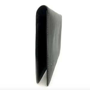 Authentic Louis Vuitton Black Epi Leather Checkbook Wallet This is an authentic Louis Vuitton Epi checkbook wallet. Has 6 credit card slots, bill slot and check book slot (can also be used for whatever you want to use it for). Please review pictures - exterior is in good used condition. Minor signs of scuffing and wear from normal use. The corners are in great condition, no visible signs of cracks or tears. There may be slight discoloration of the leather due to use and age. Interior - the interior appears yo be in good condition mostly except for the bill slots/pockets. Please review all of the photos and ask questions prior to purchasing. Measurements (approx) Height - 7.25 in Length - 4 in Width - 1 in SN# SR0010 Inventory # LV-1027