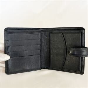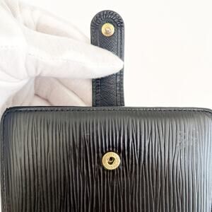 Elegant black wallet. Epi leather design. Compact and stylish. Has minor signs of use including peeling in cash slot, otherwise no callouts