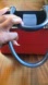 Authentic Louis Vuitton Kleber handbag featuring Red Epi leather and blue smooth leather trim