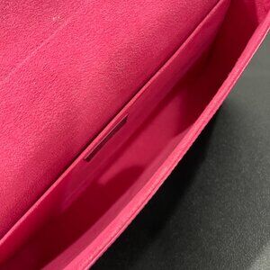 This is an authentic Louis Vuitton Epi Pochette Felicie in Black and Hot Pink. This stylish clutch/shoulder/crossbody bag is crafted of Louis Vuitton epi leather in black with hot pink trim. The bag features an envelope-style flap that opens to a hot pink microfiber interior with a patch pocket. This cute bag can be used as shoulder bag or crossbody and is in great condition!