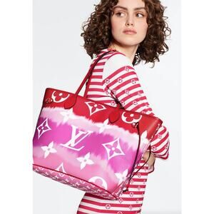Louis Vuitton Escale Neverfull MM Red White Tie Dye Tote Handle Shoulder Bag