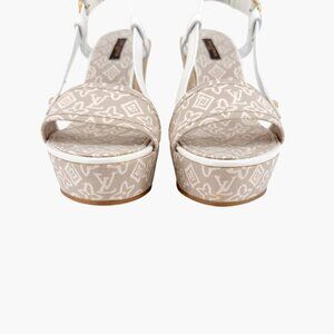 Louis Vuitton Espadrille Wedge Sandals Size 38.5 US 8.5 Beige LV Canvas Platform