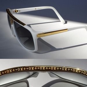 VERY RARE Authentic Louis Vuitton Evidence Sunglasses | White Acetate frames with Gold metal inlay. Purchased brand new from the Louis Vuitton retail store in Orlando,FL. Lenses have no scuffs, scrapes, or scratches and will come inside the original LV box. Sunglasses case not included.