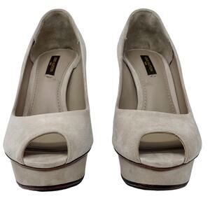 Louis Vuitton Eyeline neutral suede peep toe platform pumps size 37 US6.5