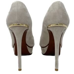 Louis Vuitton Eyeline neutral suede peep toe platform pumps size 37 US6.5