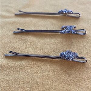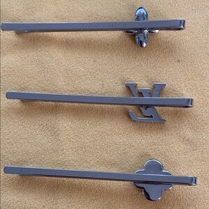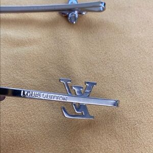 Elegant silver hair pins. Features iconic Louis Vuitton design. Perfect for adding a touch of luxury.