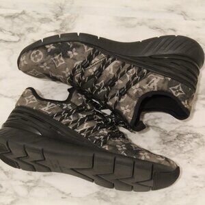 Louis Vuitton Fastlane Monogram Sneakers Black Denim LV size 8.5