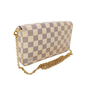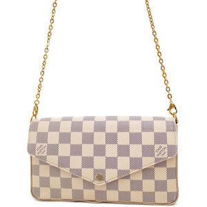Louis Vuitton Felicie Wallet Pochette Azur Bag Chain Damier White