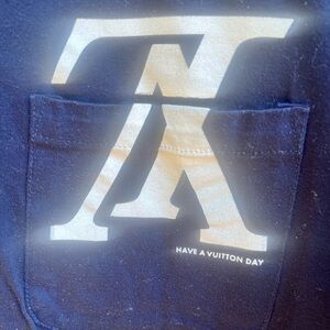 Have a Louis Vuitton day front pocket cotton tee. Louis Vuitton Forever graphic print on the back.