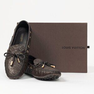Louis Vuitton Gloria Brown Monogram-Embossed Leather Flat Loafers