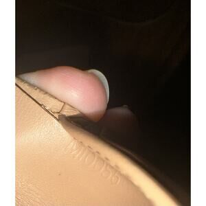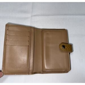 In great condition. There’s no color transfer on the vernis finish. The edge coating has some small cracks. There coin purse lining has some darkening from coins.