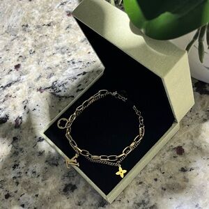 Luxurious gold bracelet adorned with signature Louis Vuitton charms. A chic addition to any ensemble.