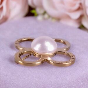 Louis Vuitton Gold Flower Pearl Center Brooch