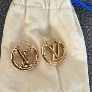 Authentic Louis Vuitton Gold Hoop Earrings in GOOD condition. Material: Metal. Color: Gold. Also Included: Original Louis Vuitton box + dust bag.