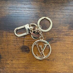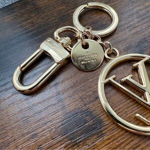 Chic gold keyring with iconic LV charm. Stylish addition to keys or bags.