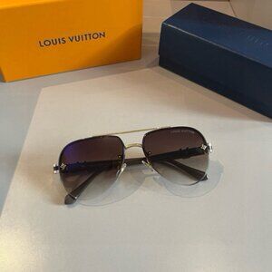 Louis Vuitton Gold Metal Frame Brown Sunglasses