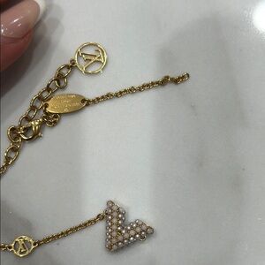 This exquisite Louis Vuitton bracelet showcases a luxurious gold finish, adorned with the iconic LV monogram and floral motifs. Crafted with a polished shine, it embodies the brand's signature elegance and timeless design. Detached from the side needs to be fixed. AUTHENTIC