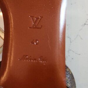 Louis Vuitton Gold Monogram Landscape Sandals, Authentic