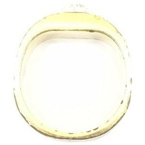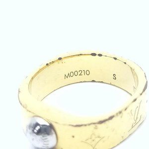 Louis Vuitton Gold Tone Monogram LV Nanogram Ring S 861982 FAIR CONDITION (6/10 or C) USA SIZE 5 Noticeable wears on the edges Minor peelings on the surface Noticeable scratches and stains on the surface Main Color : Gold Sub Color : Silver Serial No : LE0159 Material : Metal Size : 9 Country of Manufacture : Italy