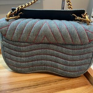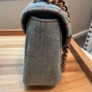 No scratches on hardware. Clean and odor free. Beautiful Quilted Vibrant Denim. Certificate of Authenticity from Entrupy. Comes with box and dustbag. Carried 2 times. Protective covering on interior clasp.