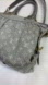 Authentic Louis Vuitton gray denim shoulder bag with strap and handles. In gently used condition, some pen marks on interior lining.