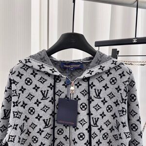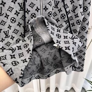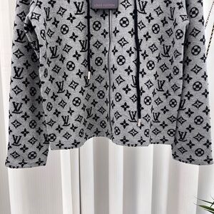 Stylish gray hoodie with iconic Louis Vuitton monogram. Features a comfortable fit and drawstring hood.