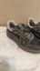 Louis Vuitton gray sneakers.