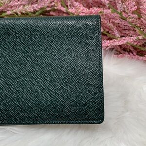 Louis Vuitton Green Taiga Leather Checkbook Wallet Datecode:V10967