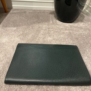 Used Authentic LV Pouchette Envelope document case in a gorgeous green Taiga. The fabric of the inner pockets shows signs of wear (pilling). No damage to the corners. Serial tag is readable.