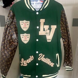 This Louis Vuitton blazer combines elegance with a touch of sophistication, featuring a rich green and brown color palette. Crafted with precision, it offers a timeless style that seamlessly fits into any wardrobe. Ideal for those seeking a luxurious addition to their collection. NOT AUTHENTIC