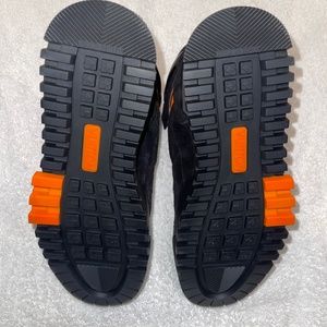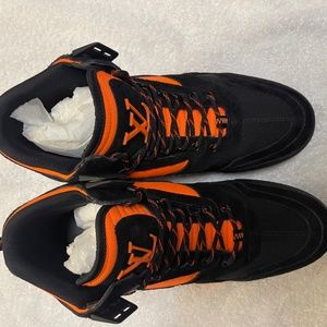 The LV Hiking ankle boot is an avant-garde design combining elements from both trekking boots and sneakers. Its deconstructed upper features a mix of materials, including nubuck and suede calf leathers and technical textile. Its elaborate outsole has a distinctive triangular insert with the LV Initials.