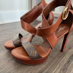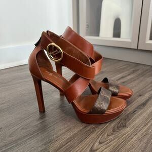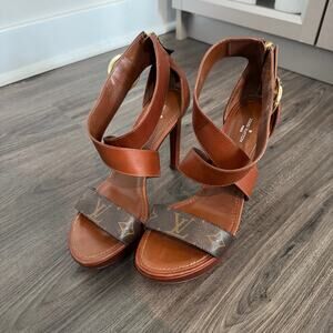 Louis Vuitton Horizon Brown Leather Platform Logo Strap Heeled Sandals