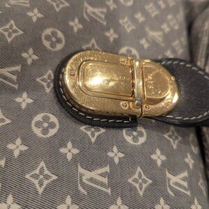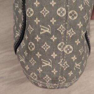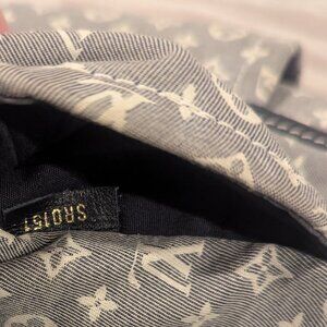 - Material: Grey Monogram Canvas with Navy Blue Leather