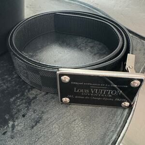 Louis Vuitton Inventeur Graphite Black Mens Belt 95/38 Box Frame Buckle SHW
