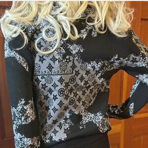Preowned, Authentic Women's Large International (but runs small). Louis Vuitton "Monogram Gradient/ Degradé" Crewneck. Black/White/ Gray/Blue. Fits like Us Medium.