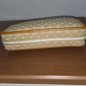 The Louis Vuitton Kathleen Pochette from 2004 offers a timeless design crafted in monogram canvas with leather trim. Compact yet functional, it features a secure zipper closure and adjustable strap for versatile wear. Its neutral tones ensure compatibility with various outfits, making it a practical addition to your accessory collection.