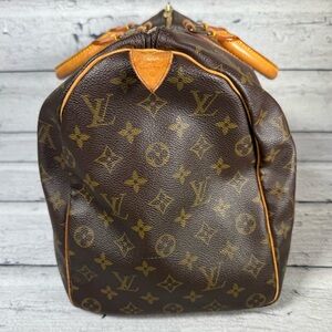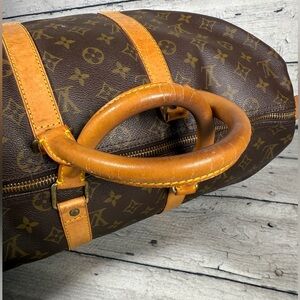 Louis Vuitton Keepall 45 brown monogram canvas leather travel duffle bag