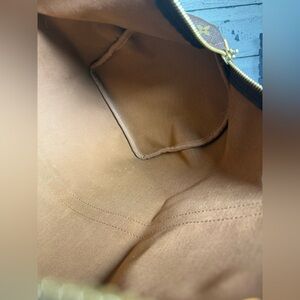 • Vachetta leather: Noticed some cracking in areas, mainly on the handles. I also noticed normal patina/ scuffing/ darkening/ staining in areas from use and age around the bag.