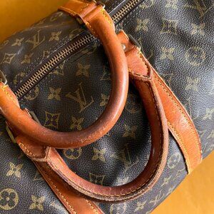 This preloved keep all is in good condition. It has some darkening on the handles, scuffing on the leather trims, and a slight burn mark on the bottom. The zip works fine. Please look closely at photos before purchase as there are no returns