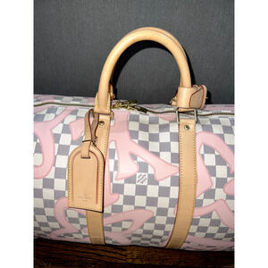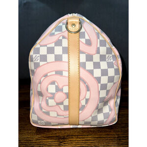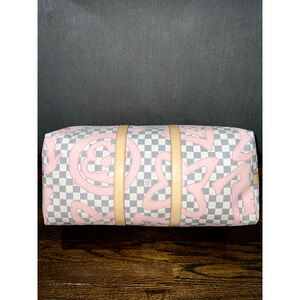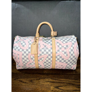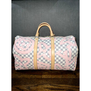 Louis Vuitton Keepall Bandouliere 50 Tahitienne Pink Damier Azur Travel Bag