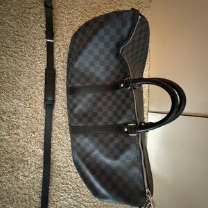 This urban travel bag in a revisited classic, Damier Graphite canvas, is not only stylish but also resistant and light. Hand held with a removable shoulder strap makes it extremely practical to use.