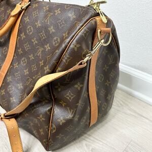 Authentic Louis Vuitton Keepall Bandoulière 55 Preowned, vintage, gently used, clean inside, natural patina, light creasing, some stain marks near the bottom on outside (see photos) overall great condition for its age.