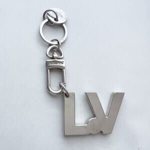 Louis Vuitton Keychain Bag Charm LV Logo Silver Authentic Key Holder