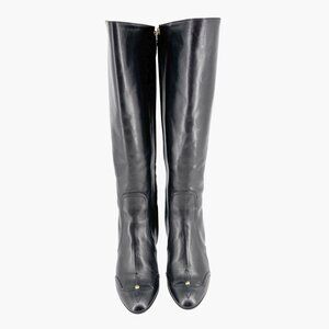 Louis Vuitton Knee High Boots EU 37.5 US 7.5 Black Leather Western LV High Heel