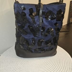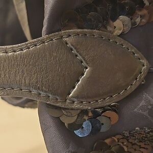 Very good pre-owned condition. Sequins intact with some light surface wear. Clean interior with soft leather and minor creasing. No major flaws.