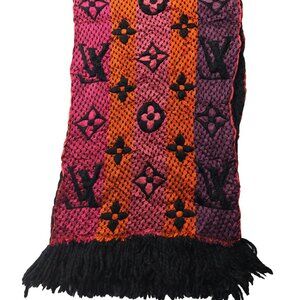 Louis Vuitton LV Black Pink Orange Multi-color Shine Monogram Logomania Scarf