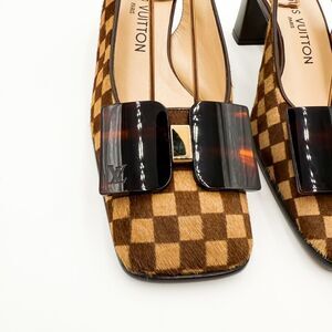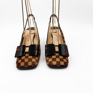 Authentic Louis Vuitton Damier Ebene Calf Hair Slingback Pumps